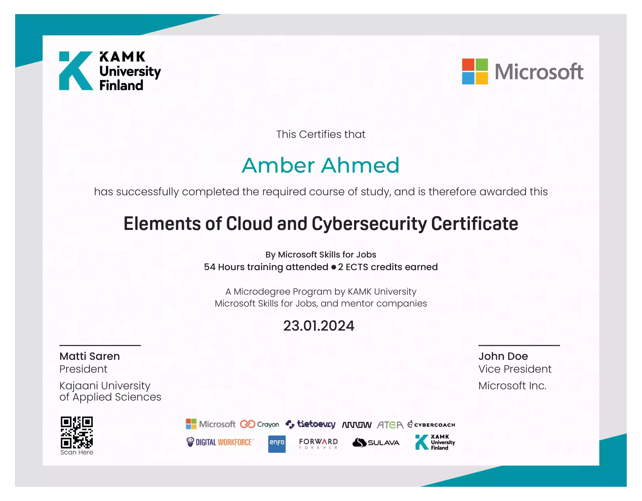 | 1 | Elements of Could & CyberSecurity | 54 Hours | 4 Hours | YES | 2 Credits | Completion Certificate |
